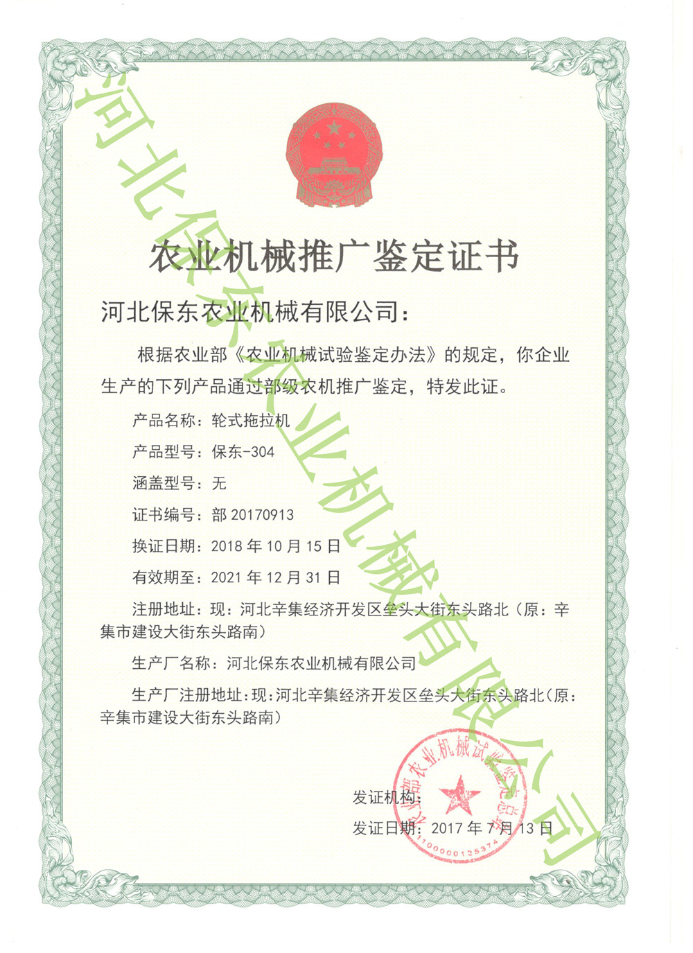 河北保東農業機械有限公司成立于2006年,坐落于“中國皮都”河北省辛集市,地理位置優越,來往交通便利。于2018年斥資3000萬在辛集市省級技術開發區興建新廠,建筑面積占地兩萬平方,并正式啟用。同年被定為“2018辛集重點項目”,設有一套完整的裝配流水線,并規范各項管理制度,從源頭上保證了產品的質量、交貨期和故障率。